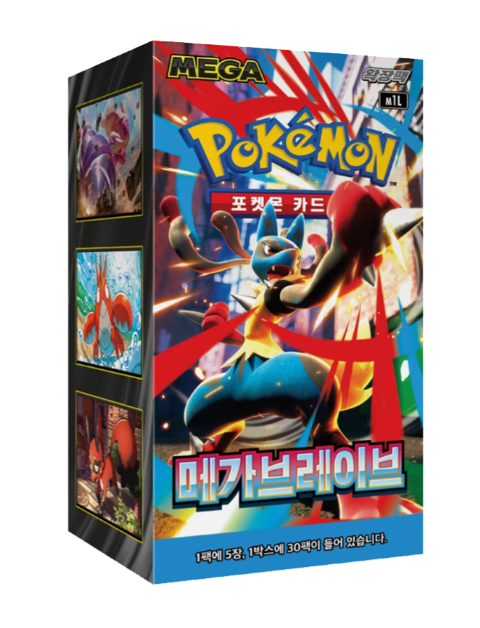 The Korean Pokemon M1L Mega Brave Booster Box is a collectable item featuring cards from the popular Pokemon TCG set. This booster box is ideal for collectors looking to add new and exciting cards to their collection.